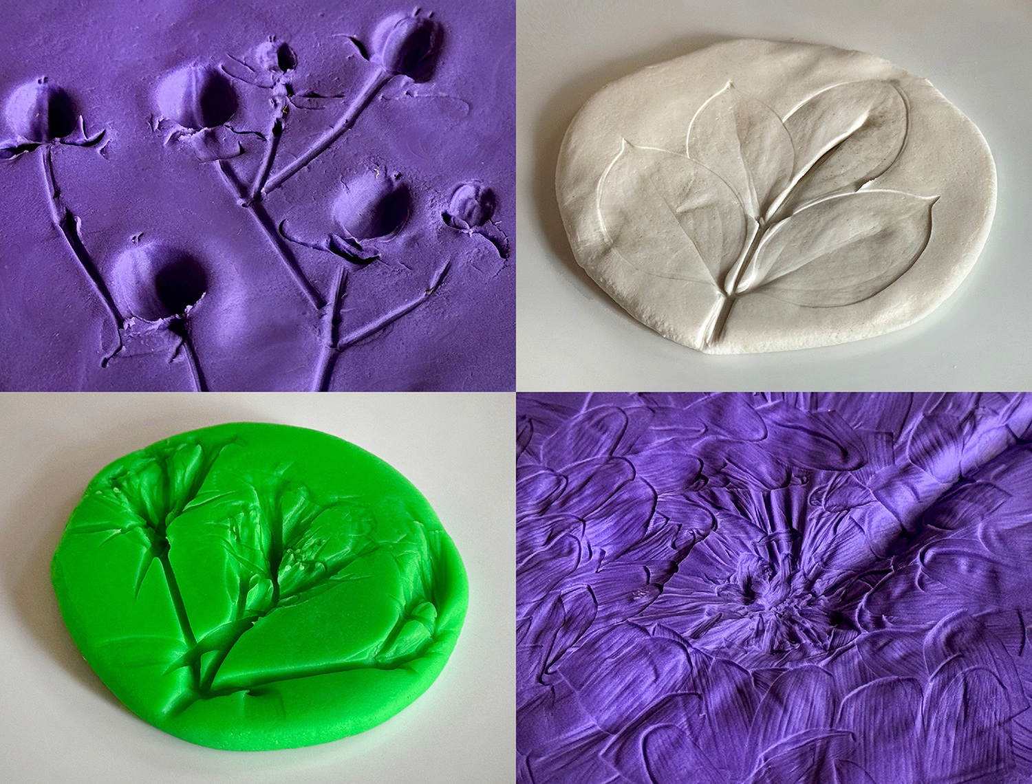 Give each student a small amount of playdough. They can press it into a flat circle. Then they can press leaves, grass, and/or flowers into the dough. Once they remove the items, your students can see the imprints left by each. Invite students to study their "fossils," and write down what they notice.